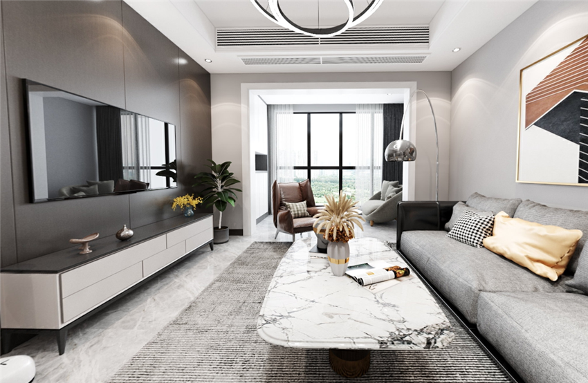 ● 戶型面積:96㎡ ● 設計風格:現代簡約 ● 整體費用:20萬 效果欣賞 客廳360全景圖賞析點擊