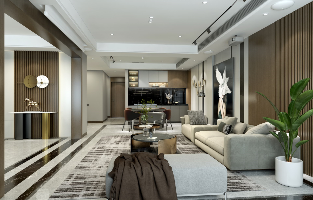 設計特點:這套現代簡約風格裝修案例,整體空間以現代簡潔為主,將滿足主人的居住需求作為設計導向,在空間內融合了多種現代高級的元素,咖啡色的木質元素搭配灰色詮釋不一樣的高級感,為家人營造出一種舒適溫馨的居住體驗。