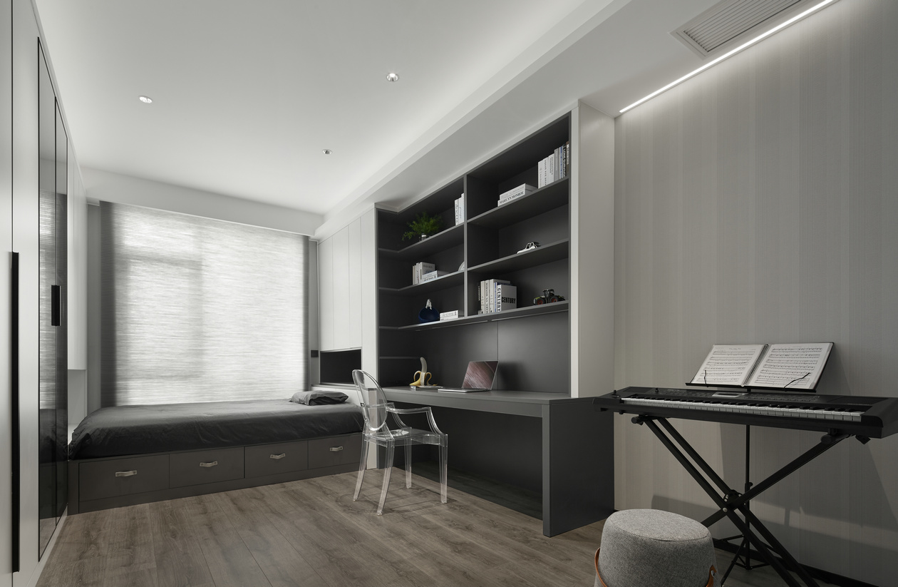 淡淡的米色與香檳色讓主臥充滿(mǎn)優(yōu)雅的韻味,既裝載了浪漫的私人空間,又融進(jìn)了對(duì)生活的向往,色彩的碰撞更是呈現(xiàn)出曼妙豐富的設(shè)計(jì)細(xì)節(jié)。