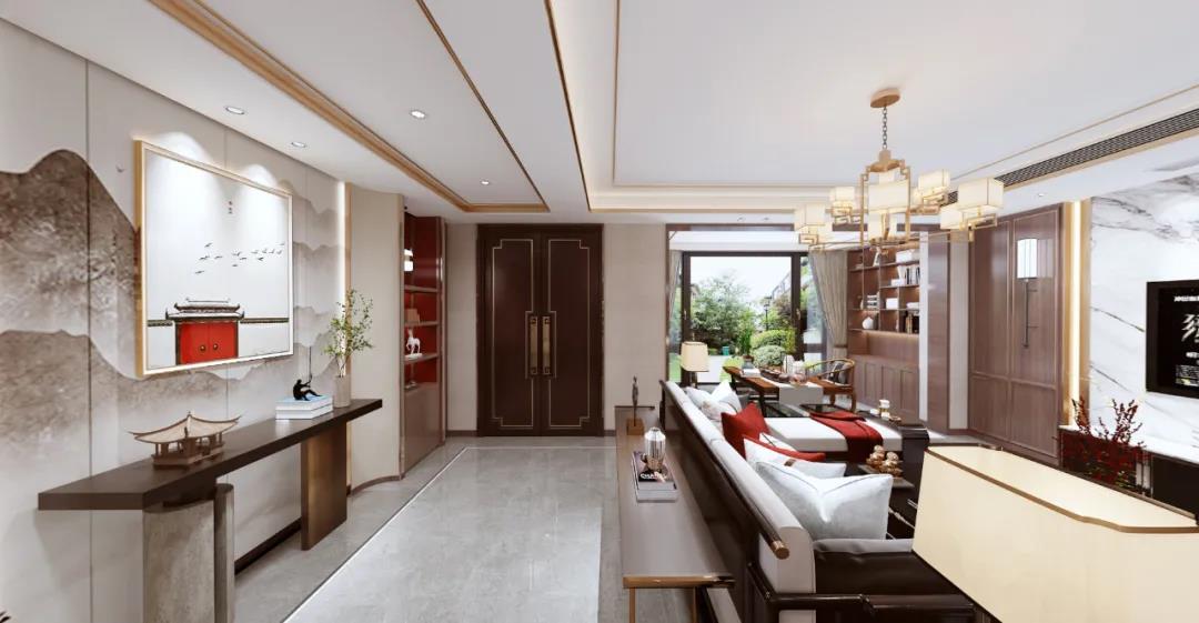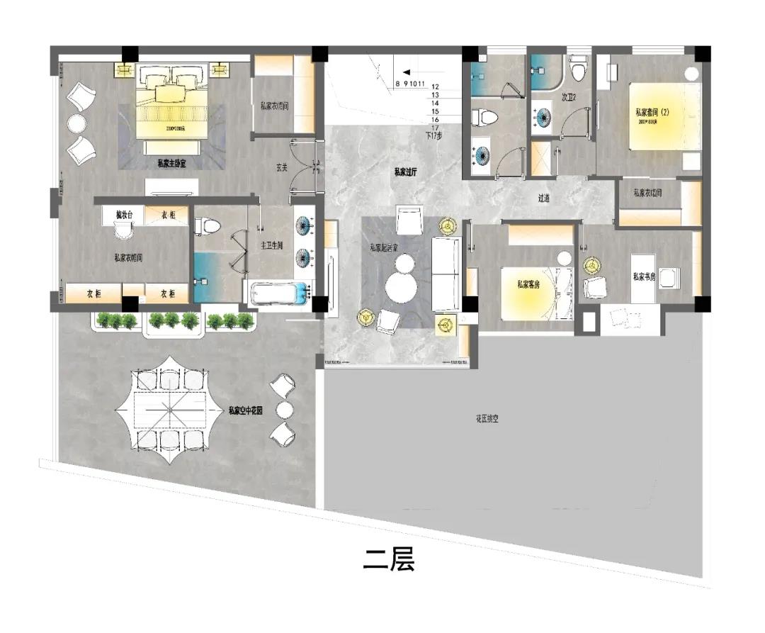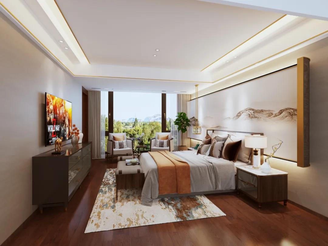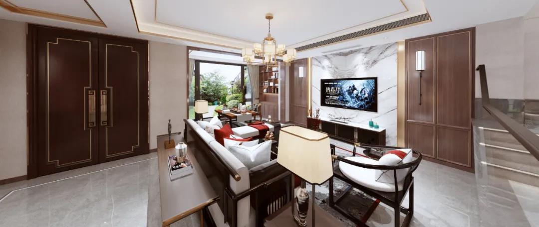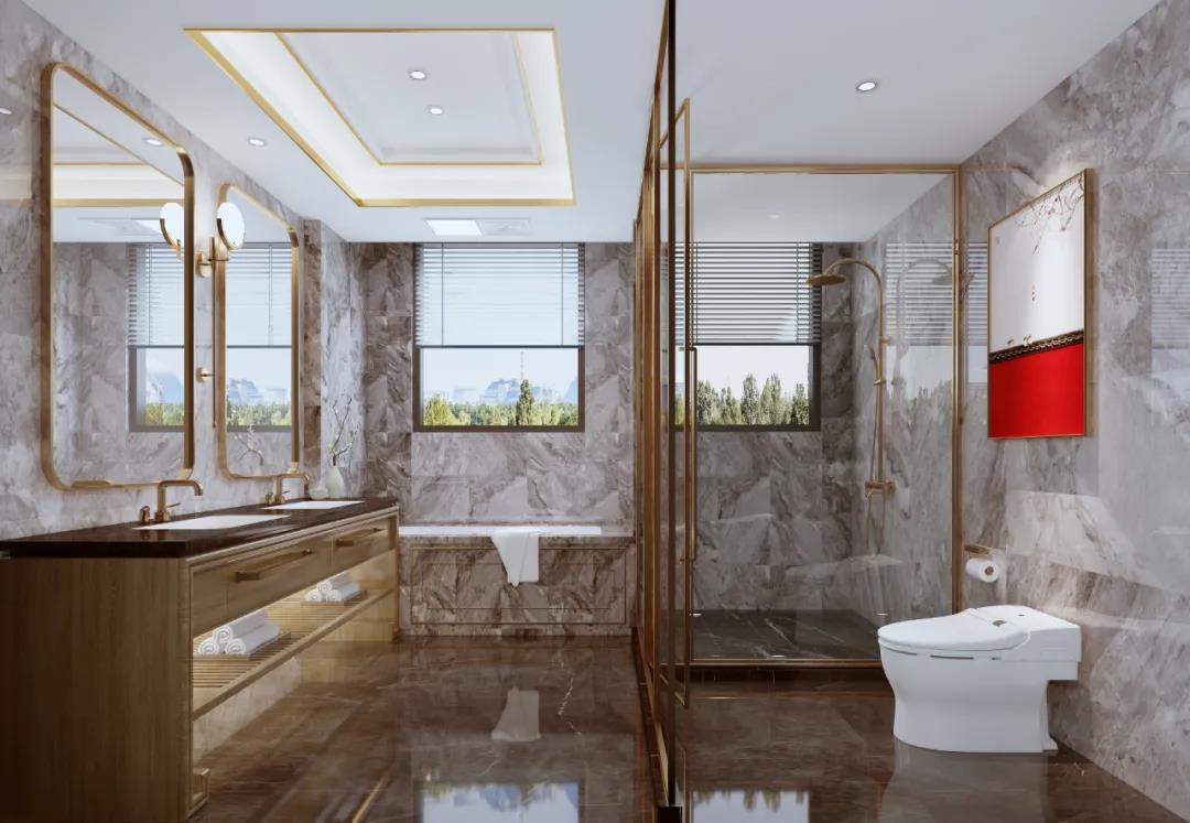 主衛采用雙臺盆的設計,方便主人進行梳洗打扮。浴缸、淋浴間、馬桶均單獨隔開,盡可能減少衛生間的積水情況,保持衛生間的清潔,方便打掃,也是為了健康。除此之外,衛生間的裝潢均采用黃銅金屬、大理石花紋,打造出奢華之感。