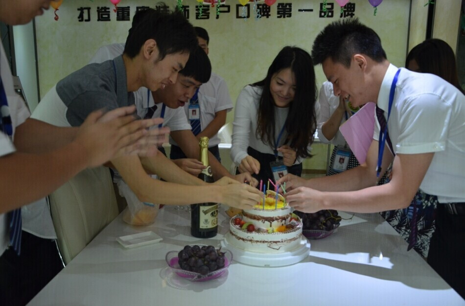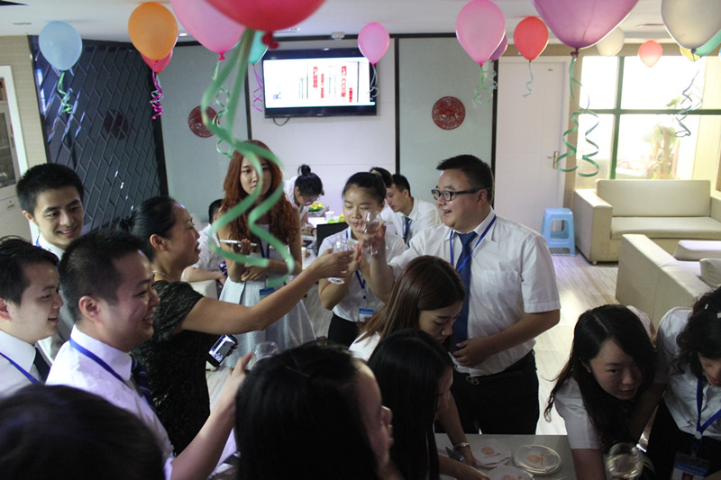 隨后,在“祝你生日快樂”的美妙歌聲和熱烈掌聲中,李總同家人們一起打開香檳,切開新思路十一周歲的生日蛋糕,共同祝福新思路十一周歲生日快樂。喝著芬香醉人的香檳,品嘗著香甜可口的蛋糕,在場的每個人臉上都洋溢著開心的笑容。大家頻頻舉杯,談笑風生,豪情滿懷,憶崢嶸,品喜悅,慶典現(xiàn)場成了一片歡樂的海洋。當然在慶祝之余,我們也把蛋糕和香檳送到正在現(xiàn)場談單的客戶手中,也讓他們一起分享這種幸福和喜悅。新思路的今天,離不開管理者的智慧領(lǐng)航,也離不開每一位新思路家人的執(zhí)著付出,更離不開廣大客戶十一年來的精心呵護與大力支持,感謝每一位可愛的客戶!