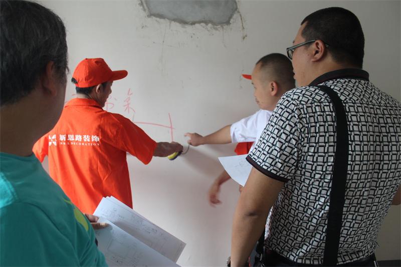 工程質檢正在向業主介紹公司施工管理和服務的標準。新思路裝飾一直堅持“客戶滿意是唯一的工作標準”,努力踐行“裝修做客戶口碑”的理念,致力為每一位客戶提供高品質的工程質量和裝修服務。