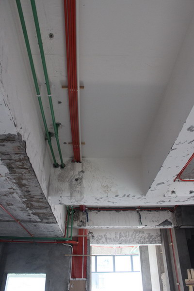 8月21日,在經(jīng)歷一些小波折(主要是業(yè)主與雅居樂物業(yè)方面就頂樓花園施工問題發(fā)生了一些小糾紛,導(dǎo)致水電施工不太順暢)之后,潘老師的工地進入了水電驗收階段。小編也特地跑了趟工地,為大家?guī)泶罅啃迈r、詳實的水電照片。廢話不說了,上圖!