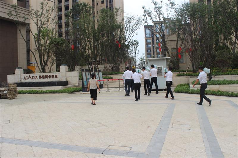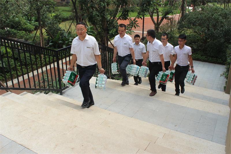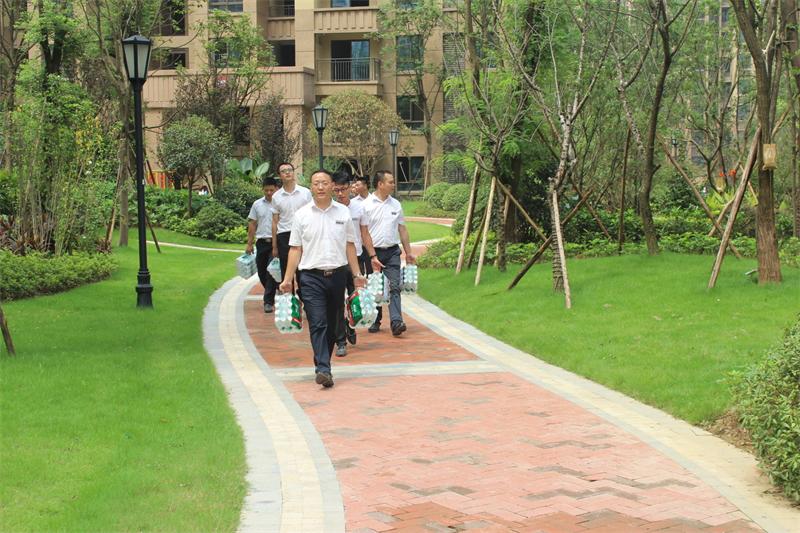 慰問小組扛著水向協信阿卡迪亞工地進發