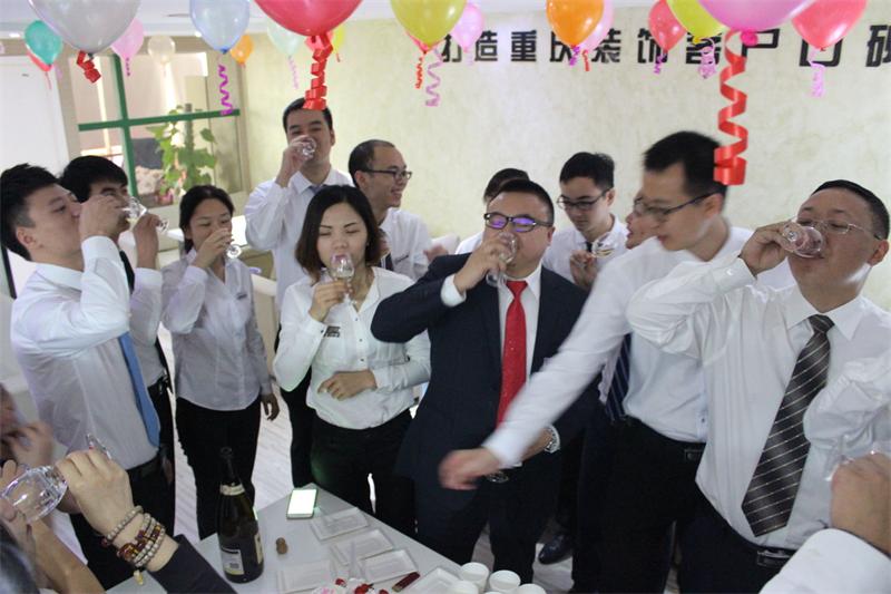 9月23日,新思路裝飾各店面鮮花爛漫,彩球招展,處處都洋溢著節日的喜慶氣氛。上午10時18分,在大家地翹首期盼中,新思路裝飾十二周年慶典準時拉開帷幕。首先,李總發表了熱情洋溢的講話,他回顧了新思路十二年發展的進程與歷史,充分肯定了公司已取得的成績,同時又提出了公司新的發展規劃和方向。最后,他向一直以來對新思路給予大力支持和厚愛的客戶朋友表示了衷心的感謝,并向一直堅守在一線與公司共同成長的員工表達了深深的謝意。隨后,在大家“祝你生日快樂”的美妙歌聲和熱烈掌聲中,李總和蔣總一起打開香檳,切開象征新思路十二周歲的生日蛋糕,共同祝福新思路十二周歲生日快樂。喝著芬香醉人的香檳,品嘗著香甜可口的蛋糕,在場的每個人臉上都洋溢著喜悅的笑容。大家談笑風生,豪情滿懷,暢談過往的艱辛坎坷,憧憬著未來的美好畫卷,慶典現場氣氛達到最頂點。