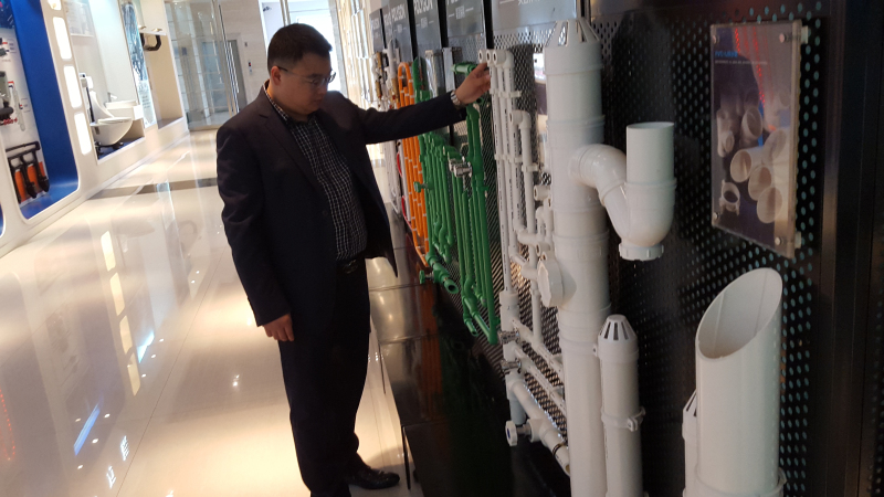 李總正在認真查看水管管件