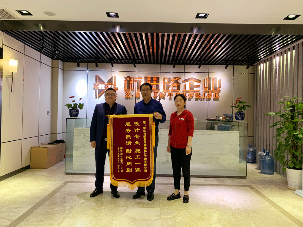 5月4日上午,公裝項(xiàng)目英中耐(重慶)公司段總,為新思路送上一面大紅錦旗。“設(shè)計(jì)專業(yè)、施工一流;服務(wù)熱情、耐心周到”這16個(gè)字充分體現(xiàn)出對(duì)我們新思路裝飾公裝部的設(shè)計(jì)、施工及服務(wù)的高度認(rèn)可。