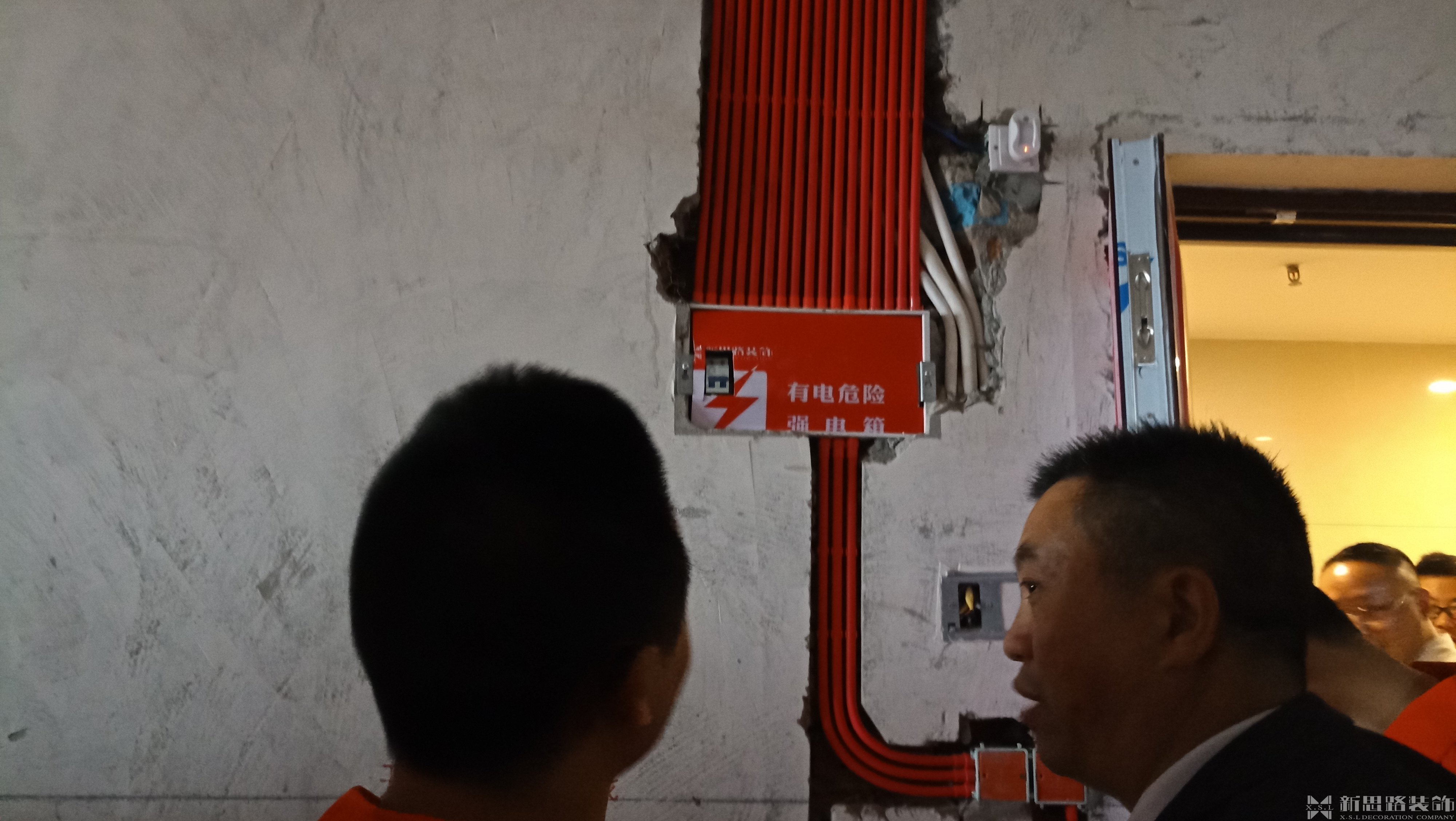 項目經理和施工師傅正在討論水電工藝