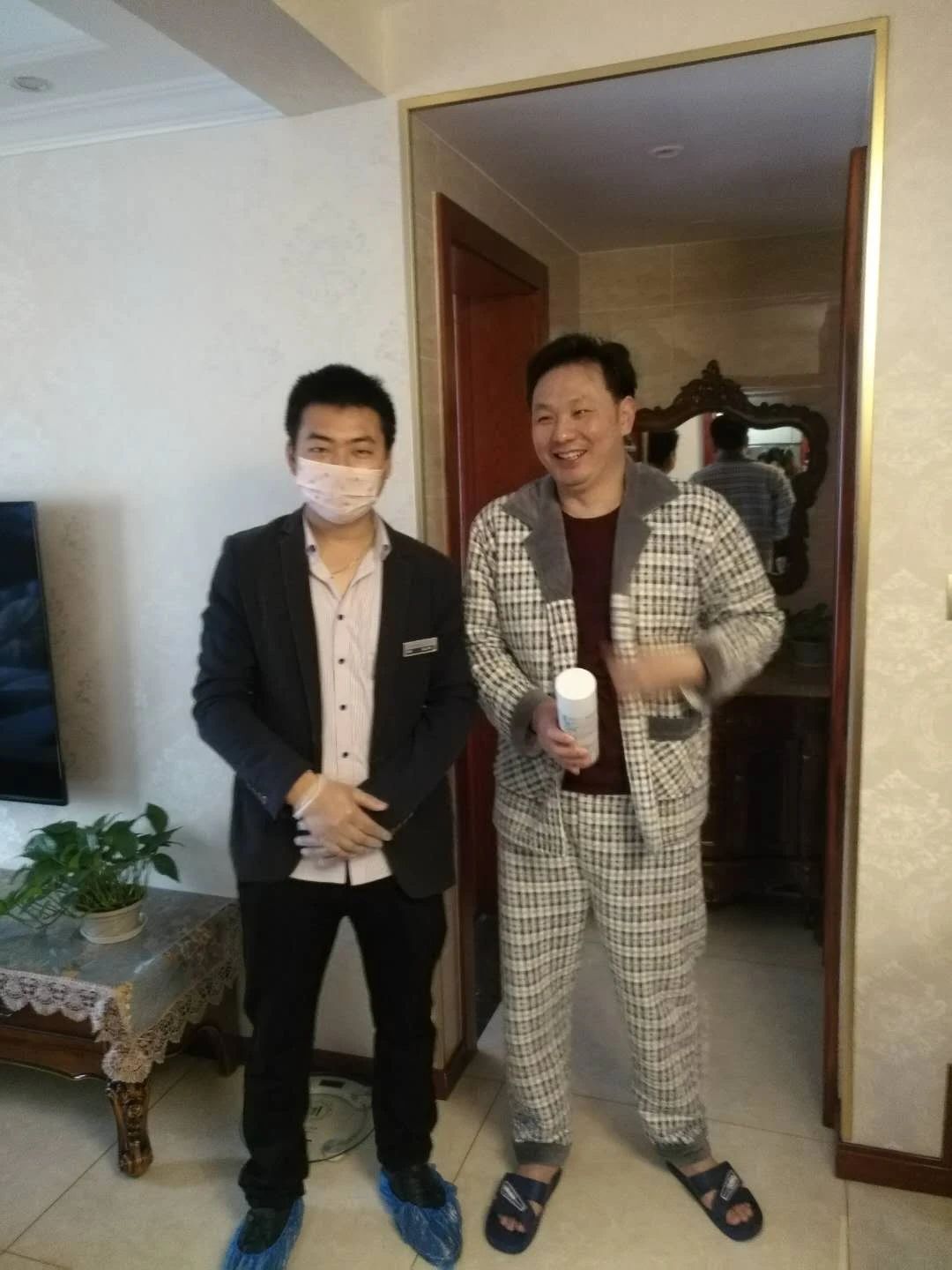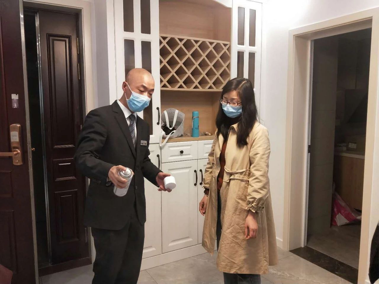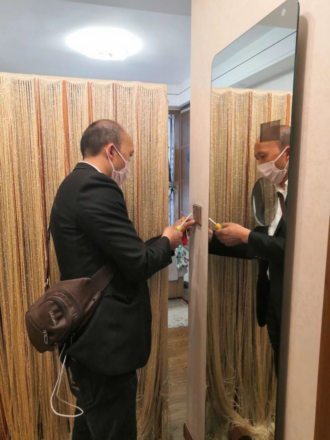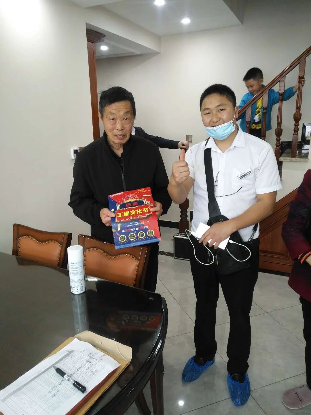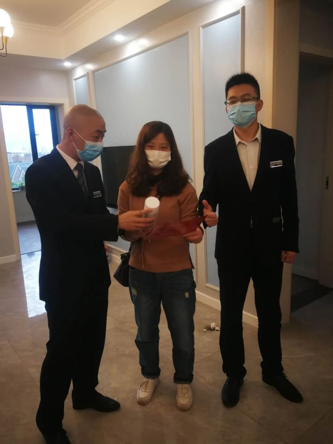 ▲工程部質檢李明(左)、質檢談代超(右)與片區經理朱慧明帶上禮物與工具前去小區