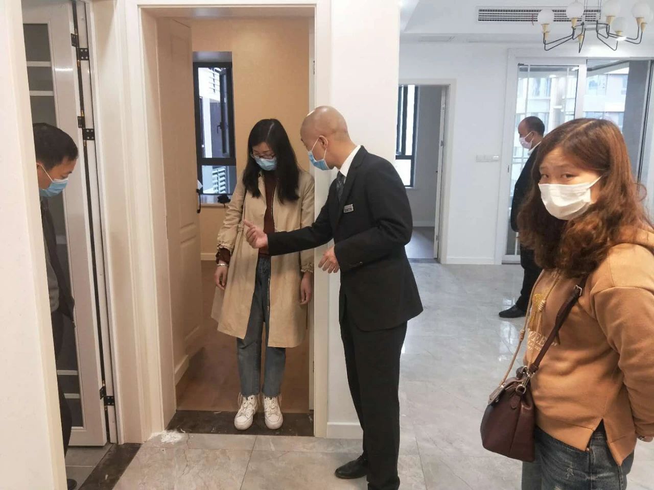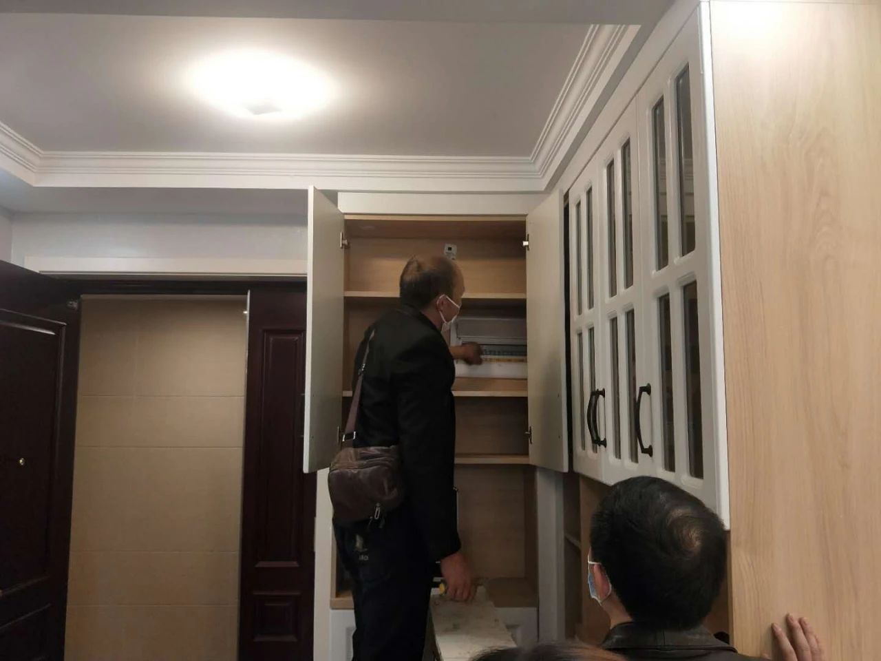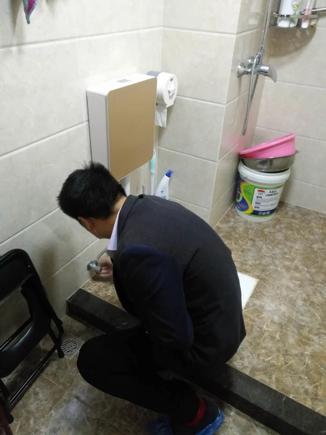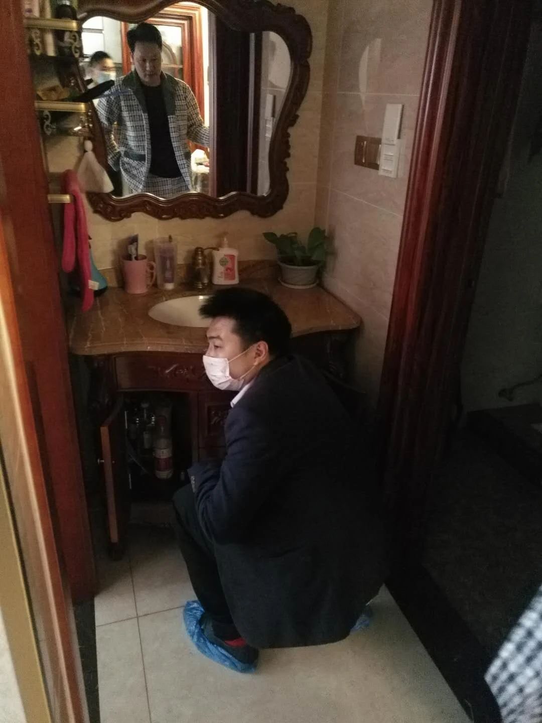 ▲工程部質檢在檢查排水管道,給業主講解相關問題