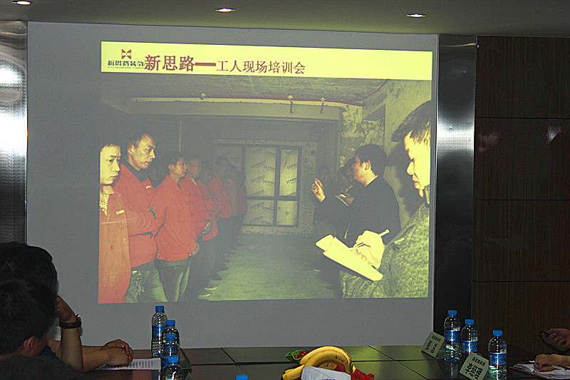 接著張總通過PPT的形式向材料商代表作了公司工程工藝和工地現場形象展示。新思路裝飾精湛的工藝品質和高水平的施工質量博得了大家的陣陣掌聲。大家紛紛表示,新思路裝飾的施工質量和工藝品質已經同重慶其他知名裝飾公司不相上下,他們對與新思路裝飾的合作前景更有信心。