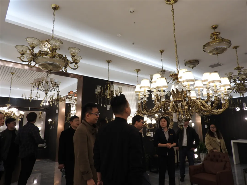 設計師們正在店員的帶領下參觀燈具