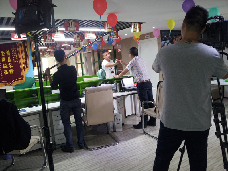 9月25日,重慶電視臺《生活麻辣燙》劇組第三次來到新思路裝飾進行了節目拍攝。多位重慶知名演員參與了此次拍攝,李總也親自上陣,小小客串了一回群眾演員,拍攝場面十分熱鬧。