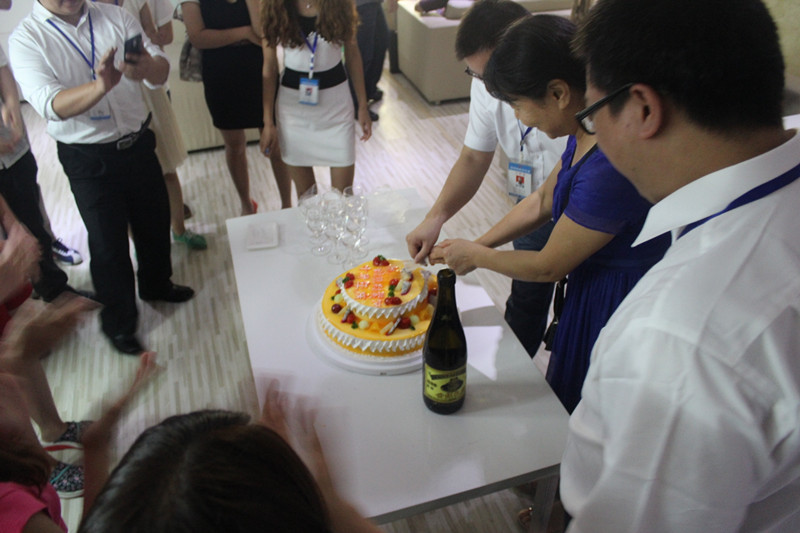 隨后,在所有人“祝你生日快樂”的美妙歌聲和熱烈掌聲中,李總和特邀客戶嘉賓一起打開香檳,切開新思路十周歲的生日蛋糕,共同祝福新思路十周歲生日。喝著芬香醉人的香檳,品嘗著香甜可口的蛋糕,在場(chǎng)的每個(gè)人臉上都洋溢著喜悅的笑容。李總也與客戶頻頻舉杯,共同慶祝這一美妙時(shí)刻。大家談笑風(fēng)生,豪情滿懷,暢談過往的艱辛坎坷,憧憬著未來的美好畫卷,慶典現(xiàn)場(chǎng)氣氛達(dá)到最頂點(diǎn)。