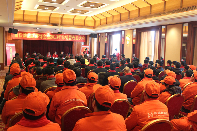 2014年1月20日下午,新思路裝飾“2013年度工作總結暨表彰大會”在麗華酒店9樓會議廳勝利召開。公司總部各部門、分公司各部門、施工一線員工代表近200人參加了會議。