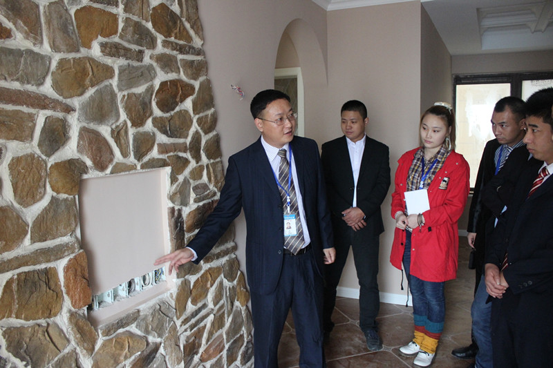 文經理正在向大家講解電視墻施工細節