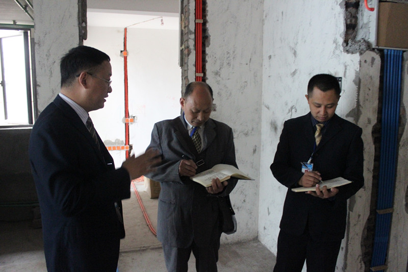 此次巡查主要針對工地形象,如標示牌、成品保護、器械配備、清潔衛生等多方面進行考核和檢查。同時對隱蔽工程如水電改造、土建、基層處理等工種進行認真檢查。在各個施工現場,工人們正有條不紊的進行施工,各樣材料的擺放及成品保護也都細致到位,工地綜合質量基本達標,處處顯露出新思路“精鉆工程”的細致與獨到之處。在檢查的同時,巡查小組還依照公司工地管理相關規章制度,對所有工地進行了總結評分,并由客服人員記錄在案。巡查過程中,文經理一直把“工程質量”掛著嘴邊。他多次強調,工程質量是新思路的根本,是公司生存和發展的命脈,每個質檢和項目經理必須要以身作則、恪盡職守,做好工地質量檢查和施工工作,做好工地服務的每一個細節,為我們的客戶把好工地質量關。