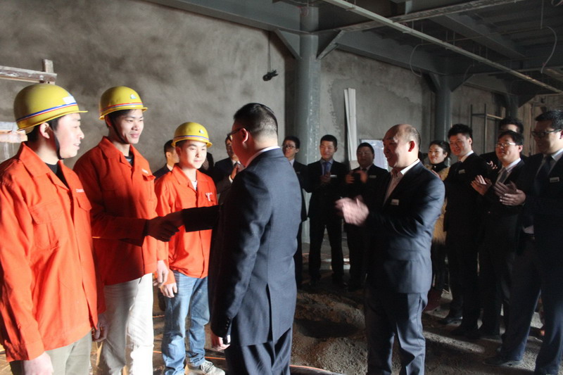 李總一一同工人師傅握手,并連連稱贊他們的施工手藝高