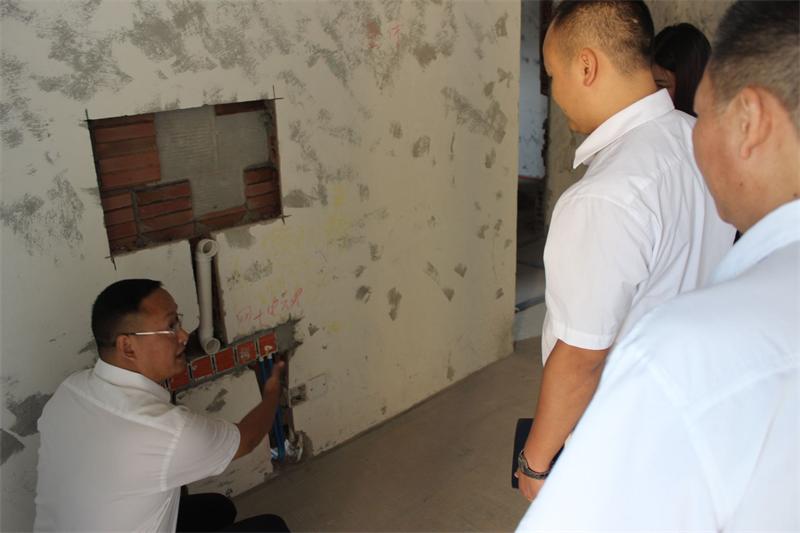 細微極致的成品保護、清晰明了的安全提醒、整齊的材料擺放……剛剛走出電梯還未步入新思路裝飾工地,就能感受到新思路對待工地的負責態度:入戶門窗都有保護膜“貼身”保護。在工地現場,各個工種工藝也都精彩展現:水電排版的清爽整齊、泥工的平整清潔、木工的精雕細琢……處處顯示出新思路高品質的工程質量。在檢查過程中,巡查人員嚴格遵循公司工地檢查的相關規定,認真仔細地敲打瓷磚,檢驗有沒有存在空鼓的情況;衣柜、抽屜的做工是否達到公司工藝標準;現場形象是否規范;各項保護工作是否到位。對于在檢查中發現的問題和不符合公司施工規范的地方,客服人員會認真記錄在案,并現場通知相關項目經理及時整改到位。而在巡查完之后,工程部還將在每周一的例會上通報工地巡查情況,及時總結問題和亮點,同時對工地進行評比,積極獎勵優秀工程質檢和項目經理。