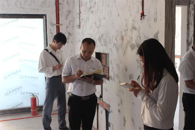 十月的山城艷陽高照,秋高氣爽,新思路裝飾展開了新一輪的工地巡查。10月16日,由工程部文經理親自帶隊,以工程質檢、項目經理、客服等組成的巡查小組,對金輝城·花樣派、保利江上明珠、恒基·翔龍江畔、魯能星城·六街區、龍湖源著等多個工地進行了突擊檢查。