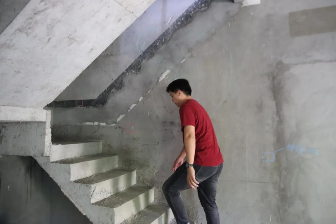 ▲設計師戴杰準備上樓查看現場