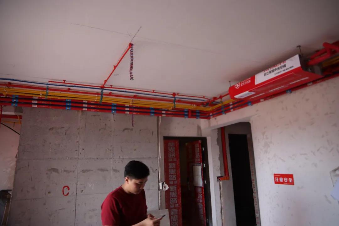 第二個工地已經進行到水電階段,設計師戴杰來到工地后,需要對現場的管線布置再次進行檢查,看其是否符合自己設計要求和預期,保證呈現和還原出設計圖紙的想法還有功能,這既是對客戶的負責,也是對自己的設計負責,讓我們的客戶住進真正滿意和舒適的新家。