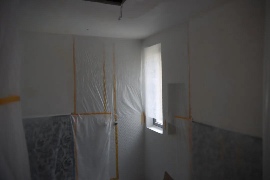▲已經完成的衛生間造型做好了保護措施