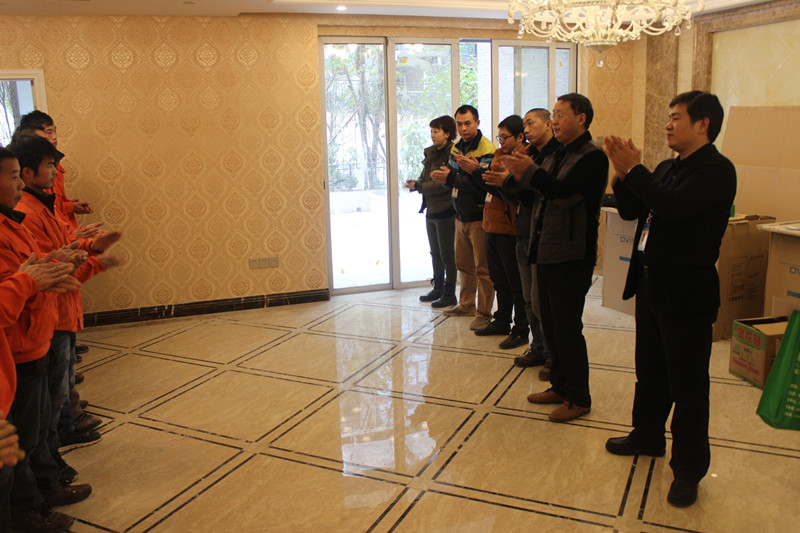 張總在會上肯定了一線員工的工作,向我們的員工表示感謝,把掌聲獻給我們的泥水工師傅們