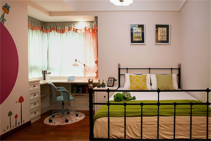 在兒童房的裝修中,不可避免地要使用一些電源插頭、油漆、粘合劑,這些也會給孩子們一些不懂事的安全構成意想不到的風險。兒童房的電源板必須隱蔽或堵塞,不得外露,也有高度的注意,最好是安排在兒童不容易觸摸的中心。例如:有些插座、電線必須掛起保護處理,風險規(guī)避可能導致孩子接觸的。在墻漆的選擇上,建議選擇品牌產(chǎn)品,像美國大師、福樂閣等產(chǎn)品,使用環(huán)境指標能夠滿足孩子們的房間。