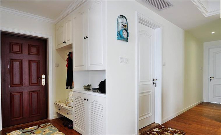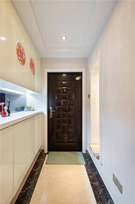 7、在玄關處擺放的家具要以不影響主人的出入為原則。溫馨提示如果居室面積偏小,可以利用低柜、鞋柜等家具擴大儲物空間。還可通過改裝家具來達到一舉兩得的效果,如把落地式家具改成懸掛的陳列架,或把低柜做成敞開式掛衣柜,增加實用性的同時又節省了空間。