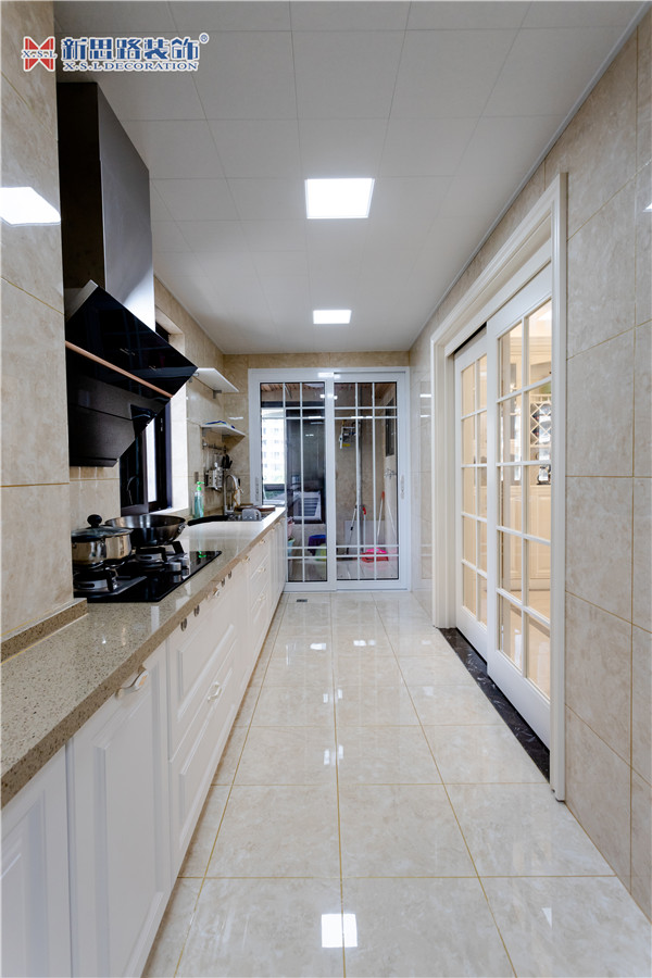 其二,充分利用空間。利用地柜與吊柜的空間的墻面,安裝擱架,可以放置消毒柜微波爐或安裝擱板、掛鉤、杯、調料瓶、鏟子、勺子等,這樣就避免了它們占據櫥柜臺面。