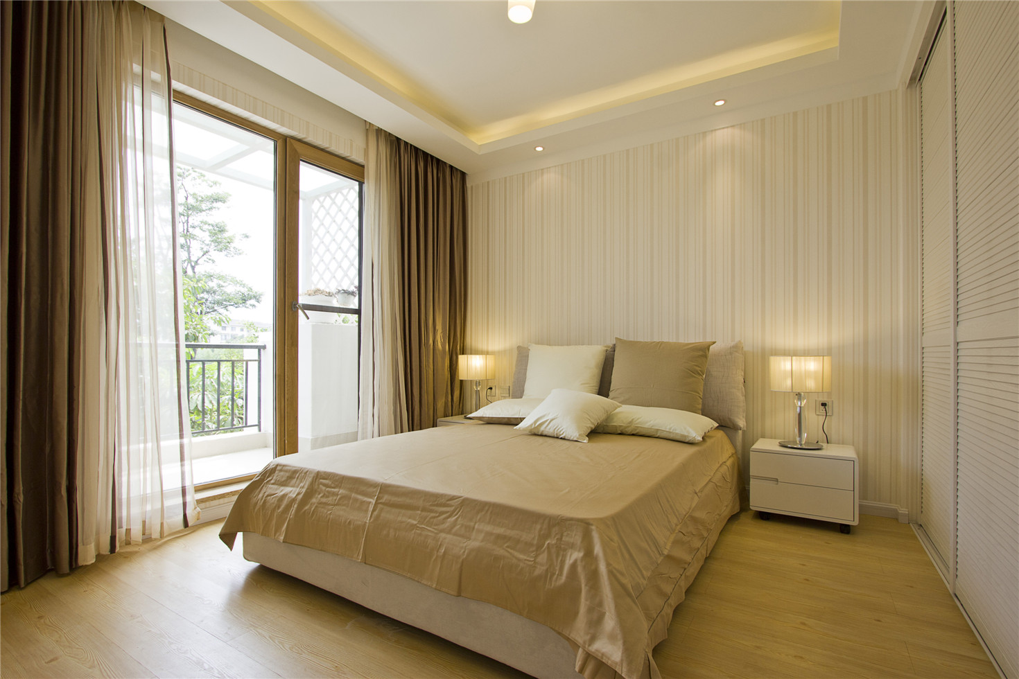 1,臥室的地面應具備保暖性,一般宜采用中性或暖色調,材料有地板地毯等。