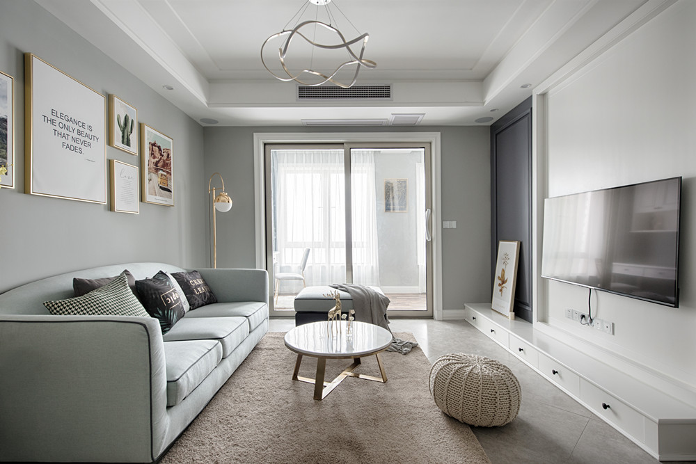 很多人都希望自己家的空間更加的具有彈性,設(shè)計師將其中的以免請變成了背景墻,隔間的材質(zhì)則是以玻璃為主的,除了讓客廳的空間感能夠延伸,同時為業(yè)主規(guī)劃出工作的區(qū)域,未來等孩子長大了,可以作為兒童的游戲的空間,讓整個的空間彈性非常的強。